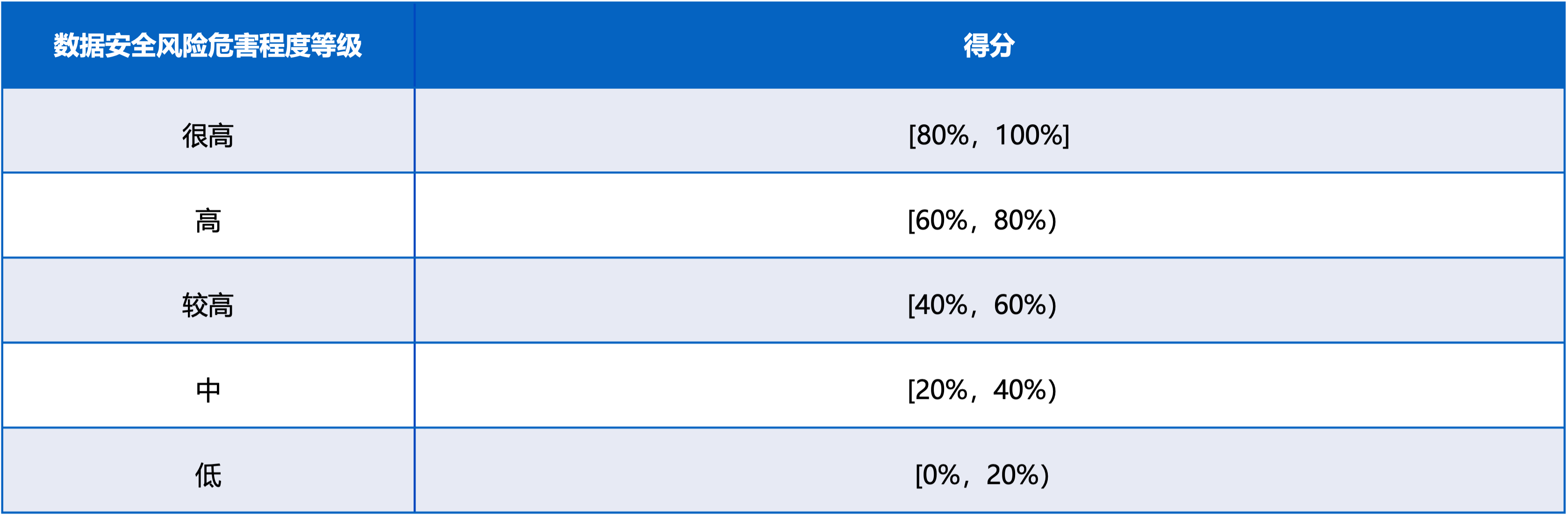 數據安全風險危害程度分析主要考慮數據價值、風險源嚴重程度等因素,結合數據級別、規模、種類、處理目的、方式、范圍等情況,綜合分析數據安全風險一旦發生,對國家安全、公共利益、組織或者個人合法權益造成的危害程度,將風險危害程度從低到高劃分為低、中、較高、高、很高5個等級。